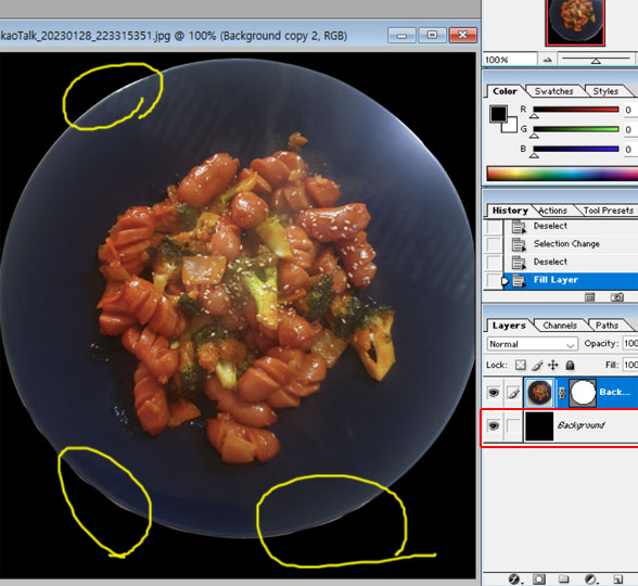 사물이 선택되면, 배경이미지를 복사해서 레이어를 생성해줍니다.