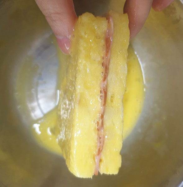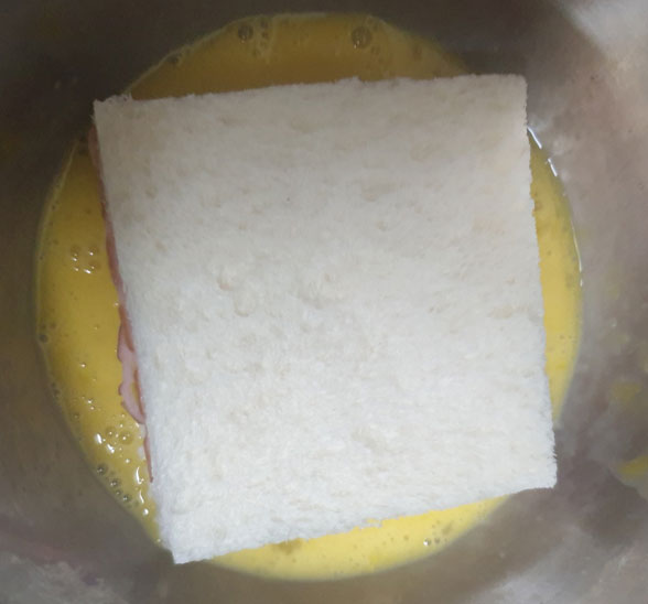 식빵을 계란에 듬뿍 묻혀준다.