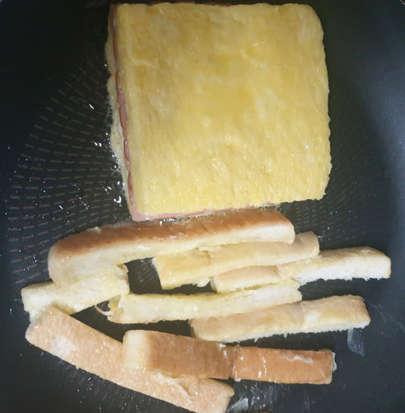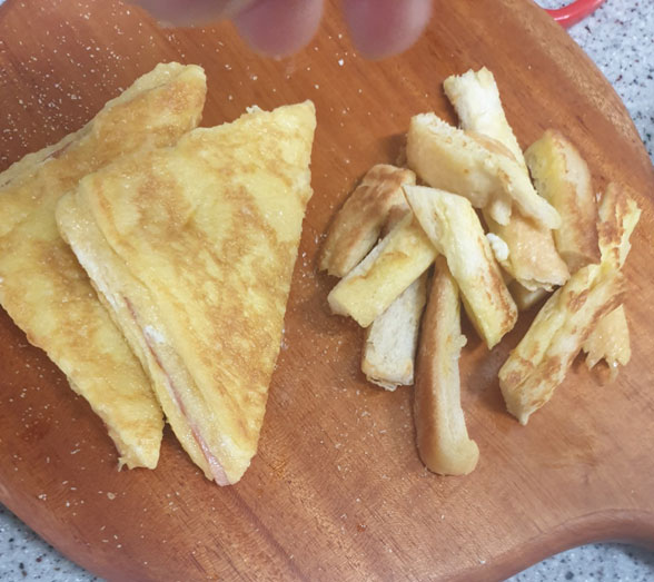 식빵 가장자리들도 일일이 계란을 입혀준다.