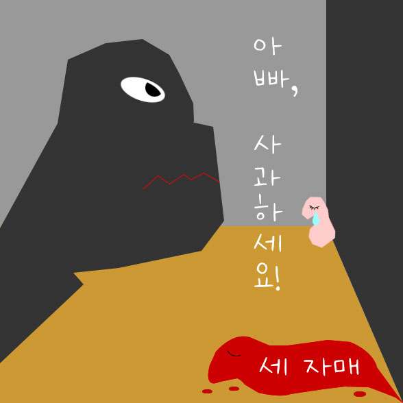 가정폭력은 단순히 한 가정만의 문제는 아니라는 것을 느꼈다. 일단 가정폭력을 당하는 아이와 그를 둘러싼 형제자매 또 그들이 소속될 또 다른 가족 구성원에게 지대한 영향을 준다. 결국 사회에도 커다란 문제가 되는 것이다. 방관하지 말고 국가가 나서서 엄중한 처벌을 해야만 한다.