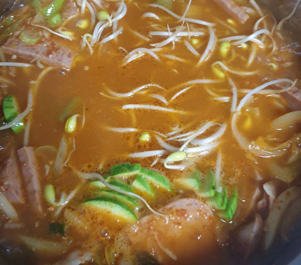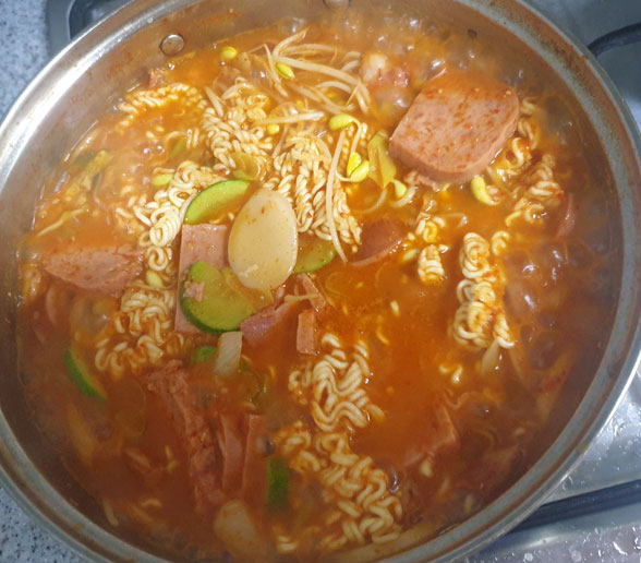 7. 라면사리를 1개~ 2개 정도 넣고 3분간 끓인다.