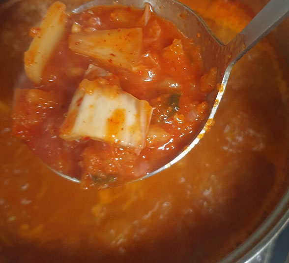 4. 김치국물 반컵을 넣고 중불에 끓여준다.